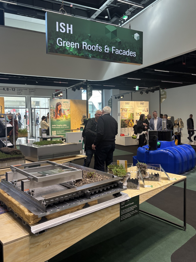 Mein persönliches Kleinod auf der ISH 2025 war das Sonderareal „Green Roofs & Facades“. Es zeigte eindrucksvoll, wie vielfältig Gründächer heute gedacht und umgesetzt werden können. Eine wichtige Botschaft angesichts der Zunahme von Hitzewellen und Starkregenereignissen in hochversiegelten Stadtgebieten!